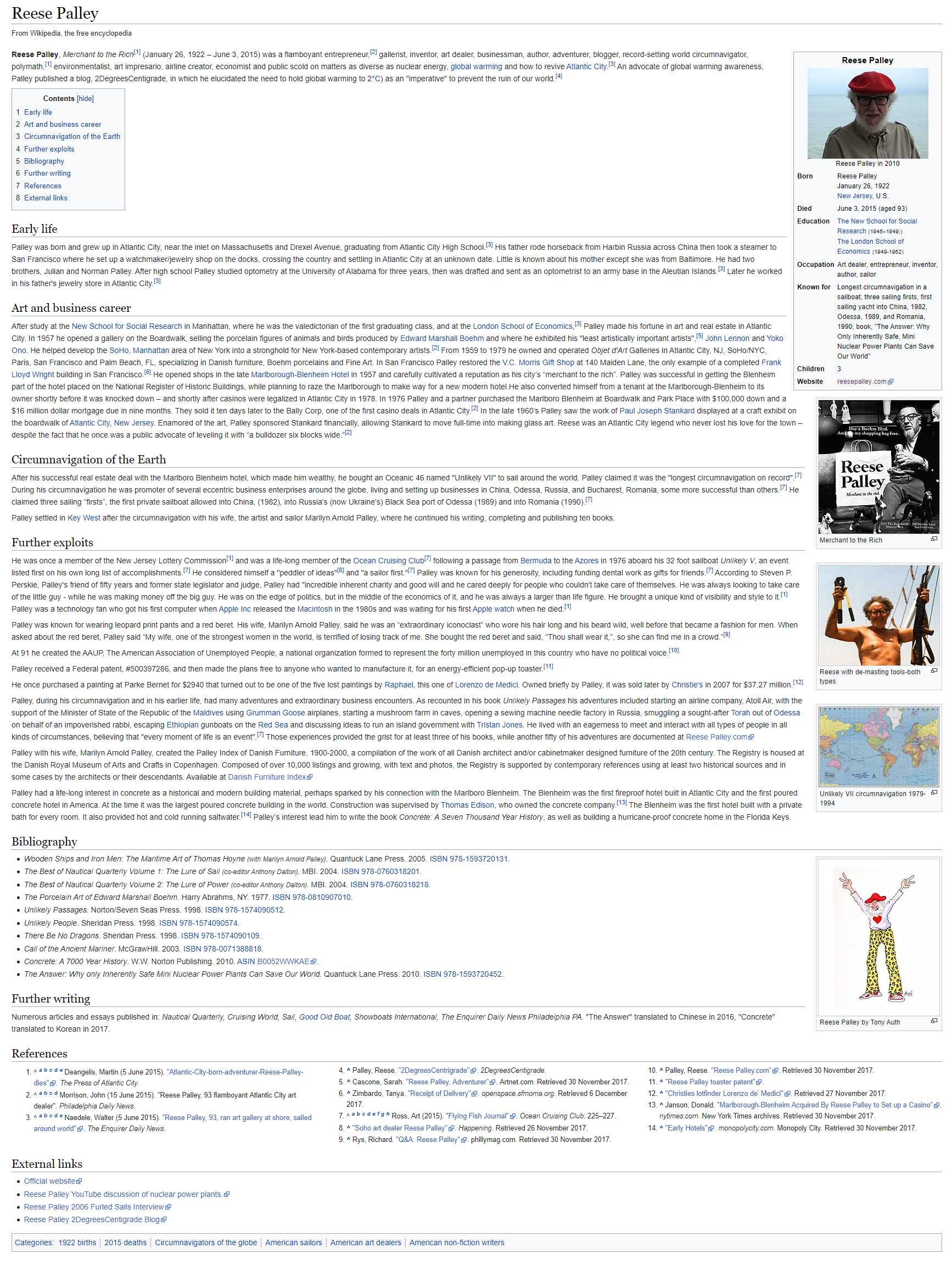 Below is an image of the original Wikipedia page for Reese Palley. A pdf version can be found HERE.